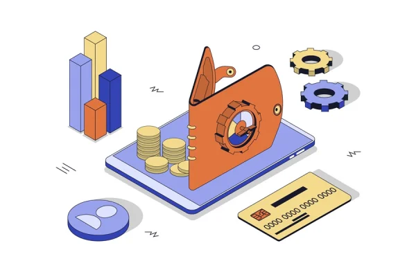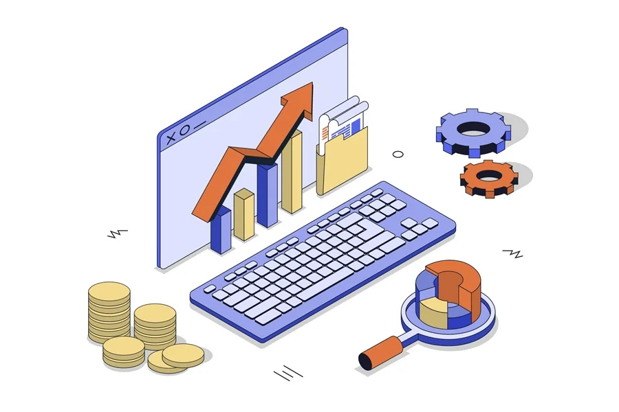 Online business isometric illustration