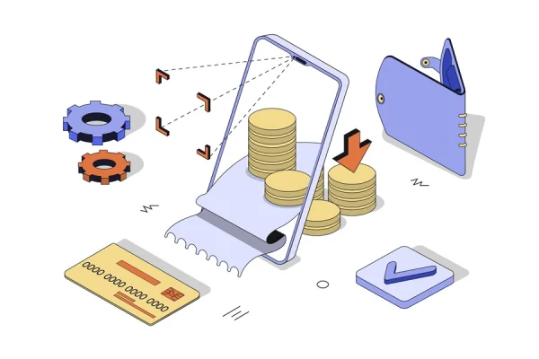 Digital wallet isometric illustration