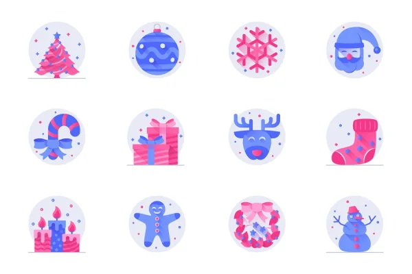 Download free: Christmas concept web flat color icons with shadow set. Pack pictograms of tree, ball, snowflake, Santa Claus, candy, gift, deer and other. Vector illustration of symbols for website mobile app design