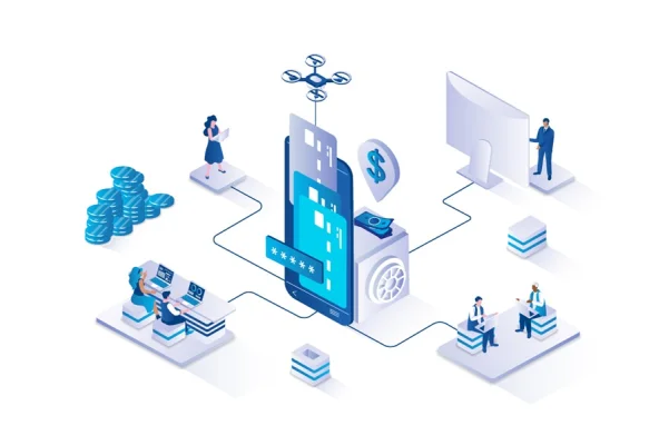 Download free: Mobile banking 3d isometric concept with isometry people design for web. Bank clients making financial transactions, taking money cash from account in atm, managing accounts. Vector illustration.