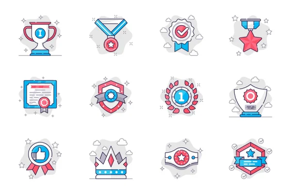 Download free: Award concept flat line icons set. Trophies for winner. Bundle of cup, medal, order, star, certificate, crown, belt, prize, ribbon and other. Vector conceptual pack outline symbols for mobile app
