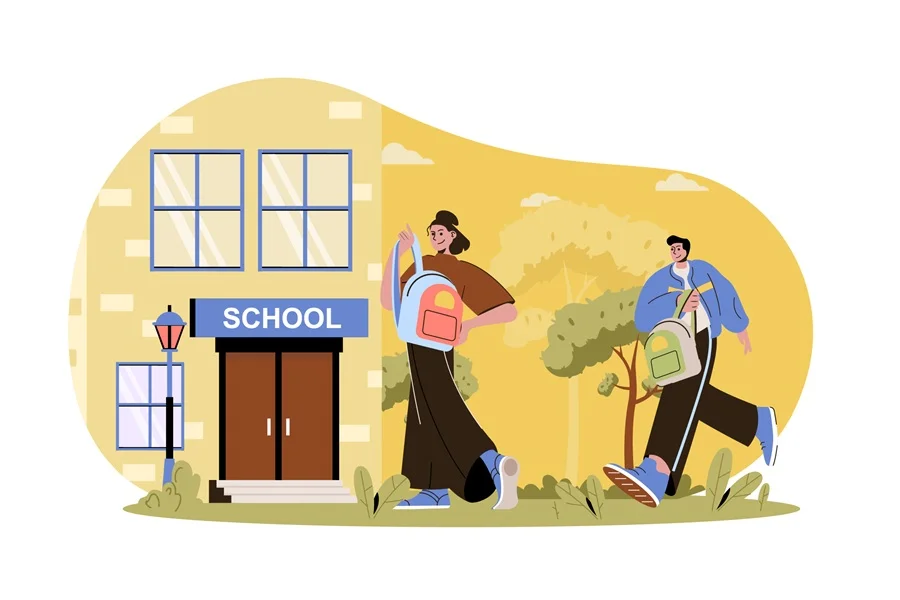 Download free: Children go to school web character concept. Pupils with schoolbags go to lessons. Teenage classmates rush to college, isolated scene with persons. Vector illustration with people in flat design