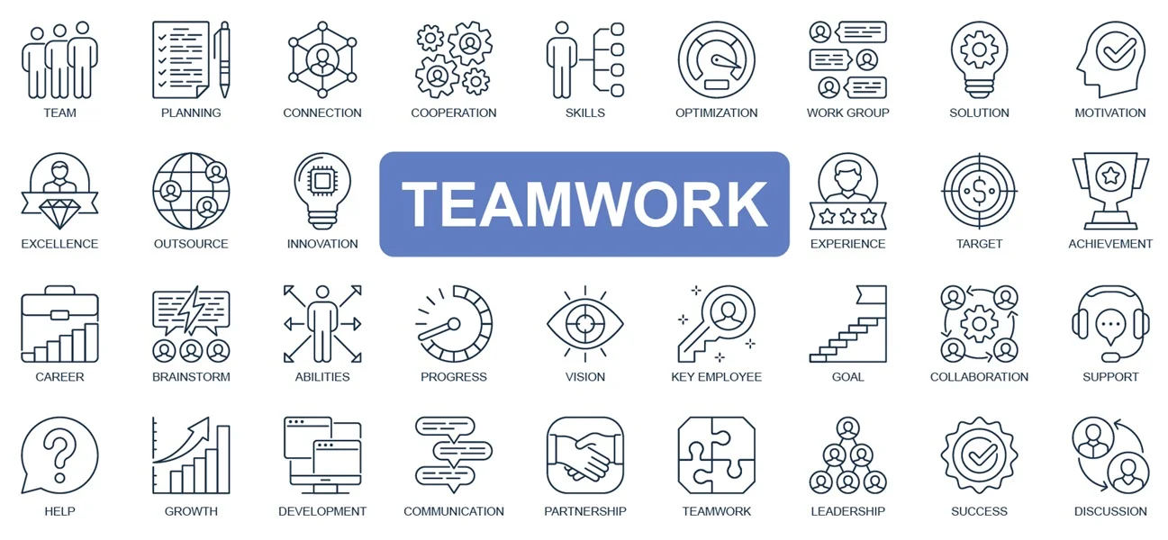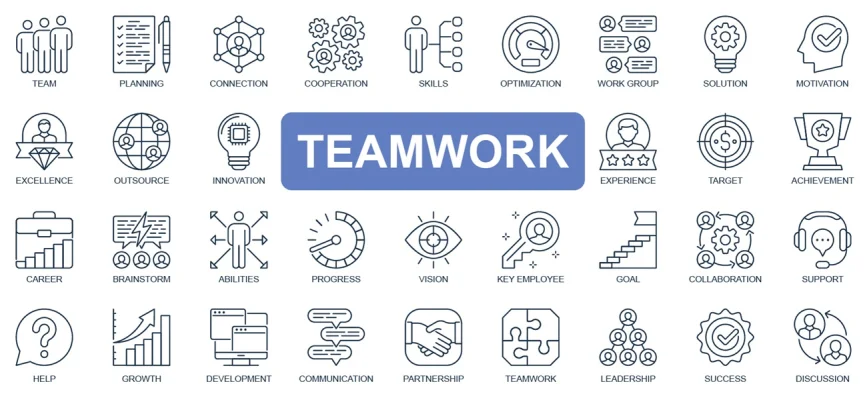 Teamwork concept simple line icons set