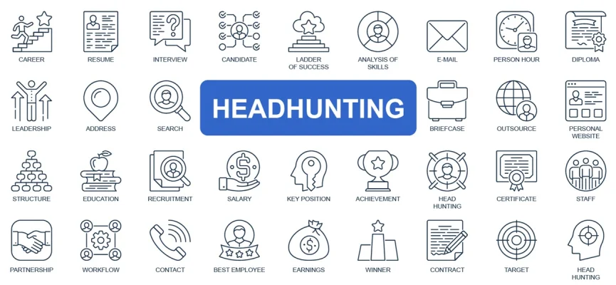 Download: Headhunting concept simple line icons set. Bundle of career, resume, interview, candidate, analysis, leadership, recruitment and other. Vector pack outline symbols for website or mobile app design