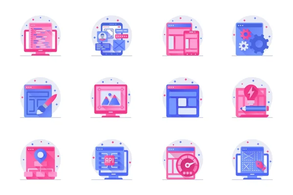 Design and development concept web flat color icons