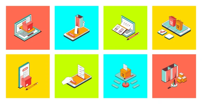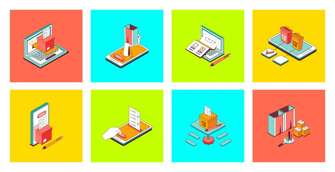 Download: Election and voting concept of 3d isometric icons set. Pack with online vote system, making democratic choices, supporting political candidates and scoring politician results. Vector illustration.