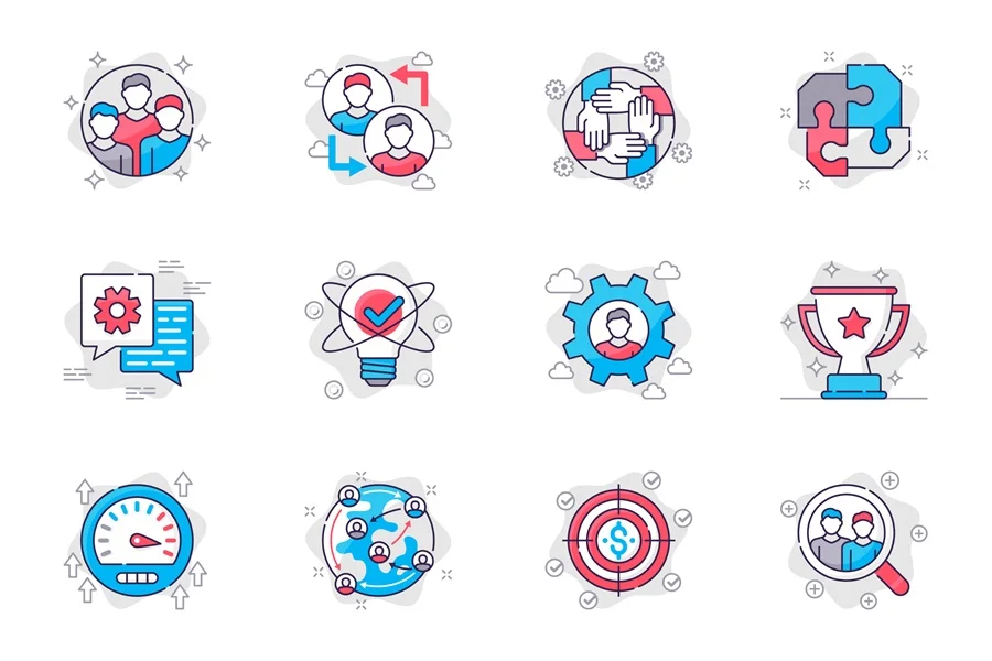 Download: Teamwork concept flat line icons set. Leadership and collaboration in business. Bundle of colleague, brainstorming, discussion, trophy and other. Vector conceptual pack outline symbols for mobile app