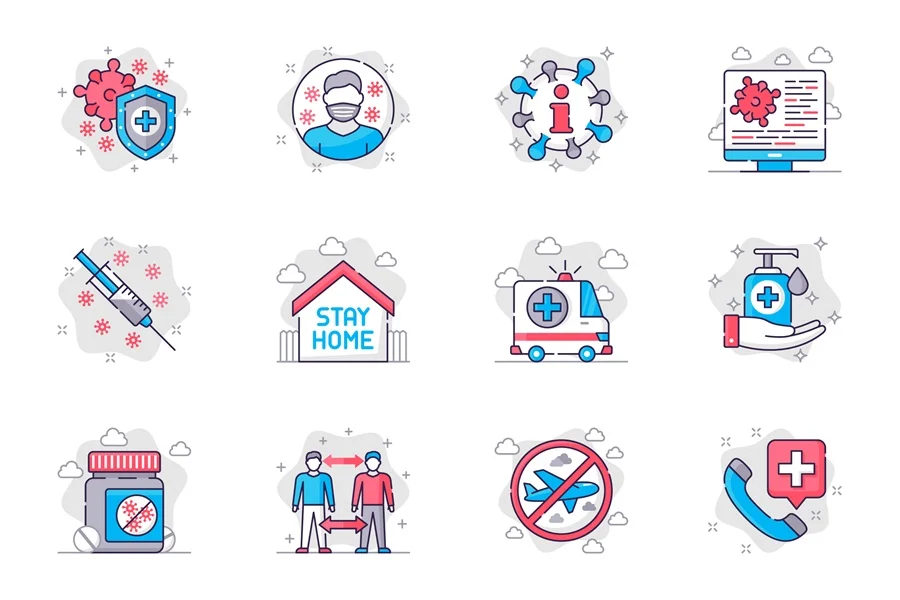 Download: Coronavirus prevention concept flat line icons set. Vaccination and prevention of disease. Bundle of medical mask, stay home, disinfection, other. Vector conceptual pack outline symbols for mobile app