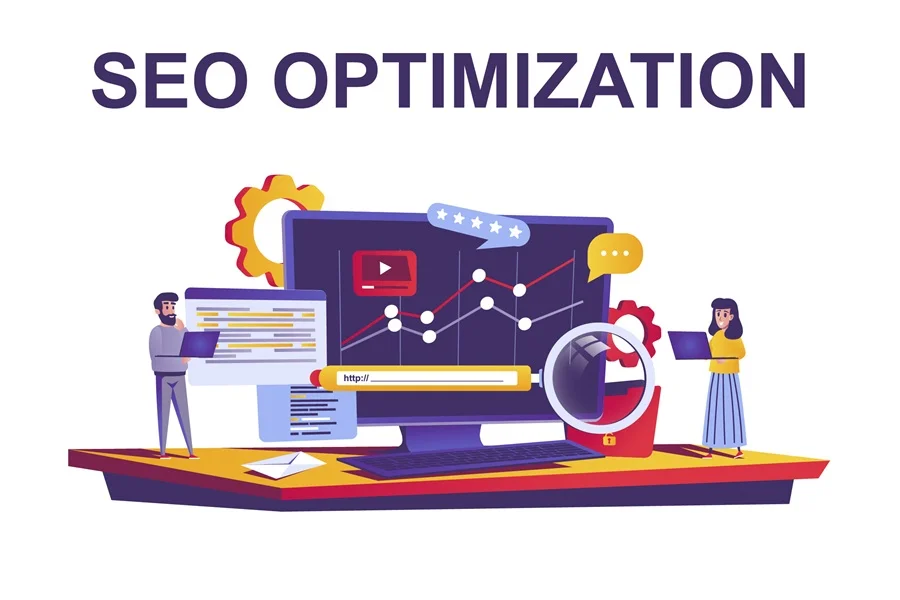 Download: Seo optimization web concept in flat style. Marketers analyze data, search engines, online marketing, advertising, promotion scene. Vector illustration of cartoon people characters for website design.