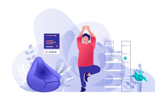 Download: Yoga at home concept for modern web design. People practicing asanas indoor, man doing balance and strength poses, training and stretching. Flat vector illustration isolated on white background.