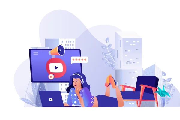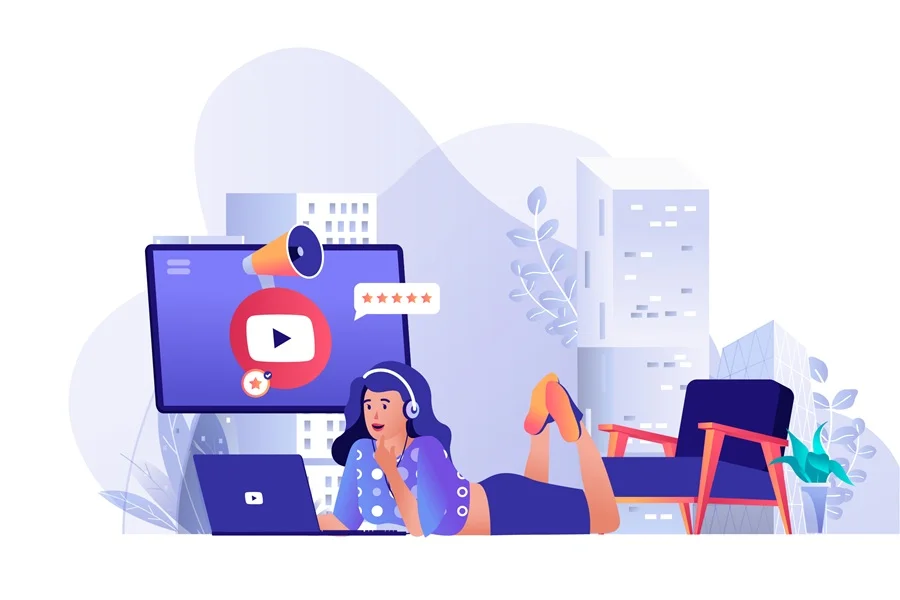 Download: Video marketing concept for modern web design. People making online advertising campaign, woman creating video content for attracting followers. Flat vector illustration isolated on white background.