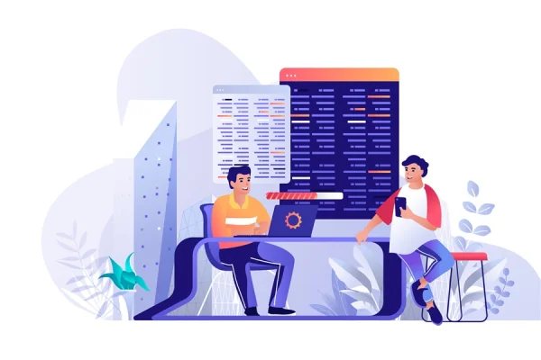 Download: Programming software concept for modern web design. People writing, testing and making optimization code at screens for different programs. Flat vector illustration isolated on white background.