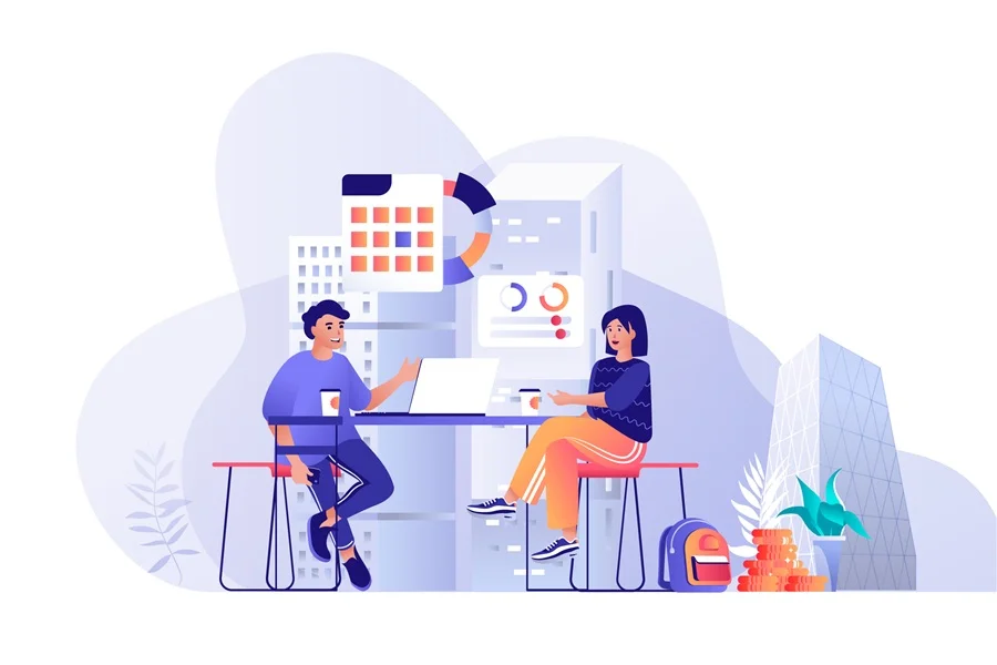 Download: Business meeting concept for modern web design. People brainstorming and talking, working in team at project, cooperating and collaborating. Flat vector illustration isolated on white background.