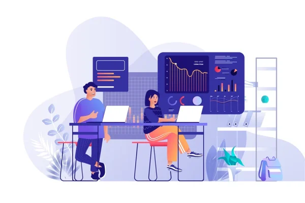 Download: AI data center concept set for web design. Collection with people using network computing with artificial intelligence technology, cloud processing, online backup with security. Vector illustration.
