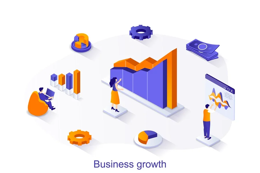 Download: Business growth isometric web concept. People work together on project, analyze financial statistics, increase company profit, development scene. Vector illustration for website template in 3d design