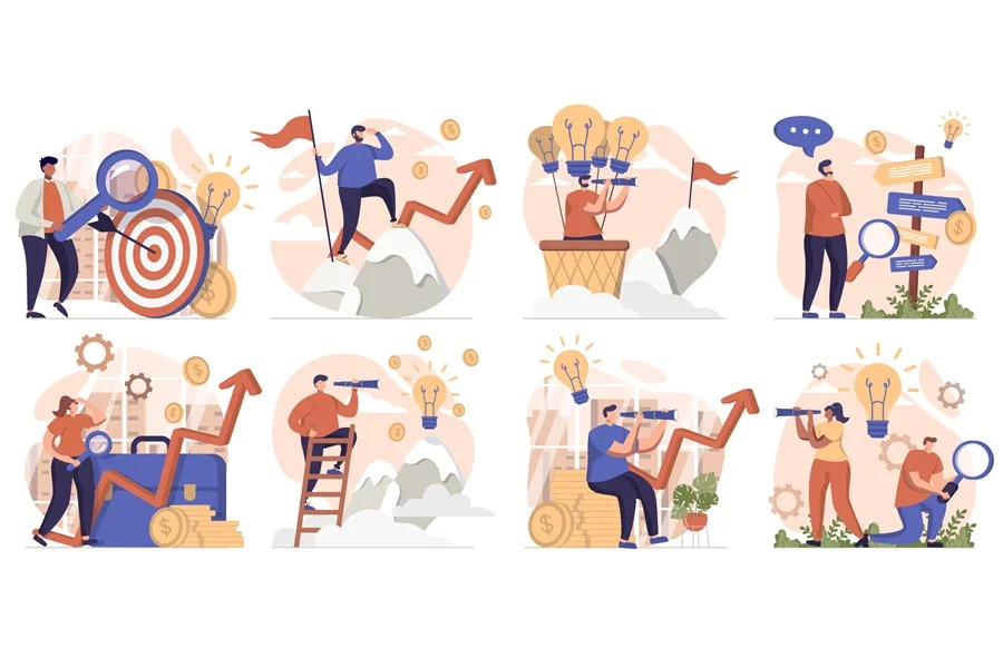 Download: Searching for opportunities collection of scenes isolated. People looking new projects and business, set in flat design. Vector illustration for blogging, website, mobile app, promotional materials.