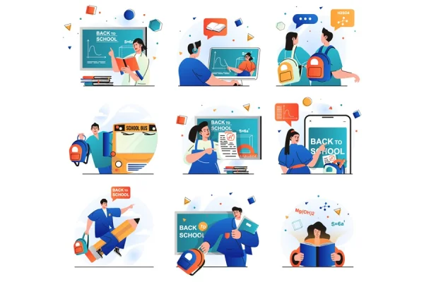 Back to school isolated set illustrations
