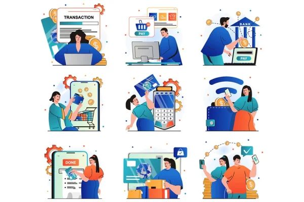 Online payment isolated set illustrations