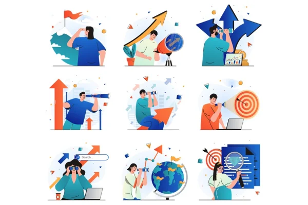 Searching for opportunities isolated set illustrations