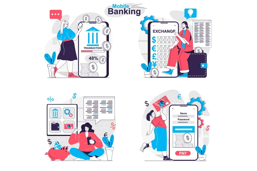 Mobile banking concept illustrations