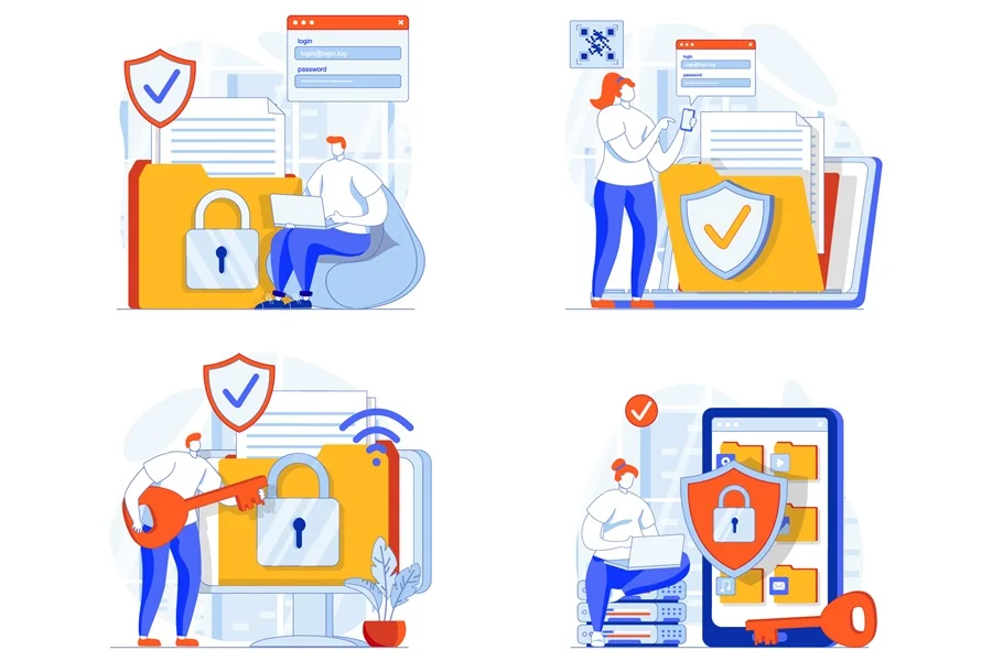 Download: Cyber security concept set. Protection of personal data and online account access. People isolated scenes in flat design. Vector illustration for blogging, website, mobile app, promotional materials.