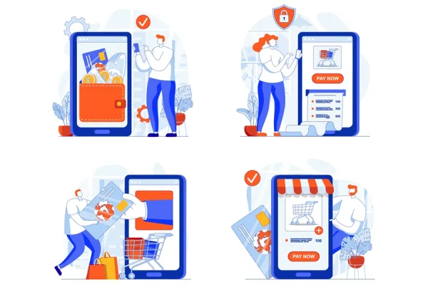 Download: Online payment concept set. Financial transactions, accounting, pay for purchases. People isolated scenes in flat design. Vector illustration for blogging, website, mobile app, promotional materials.