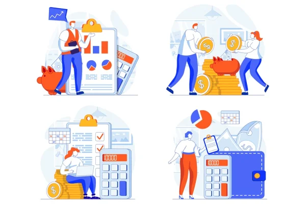Download: Planning financial budget concept set. Online banking, accounting and savings. People isolated scenes in flat design. Vector illustration for blogging, website, mobile app, promotional materials.