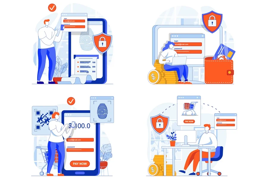 Download: Secure payment concept set. Safe online shopping, protection of transactions. People isolated scenes in flat design. Vector illustration for blogging, website, mobile app, promotional materials.