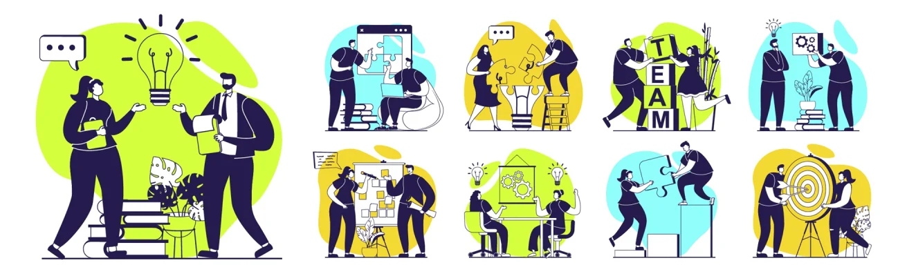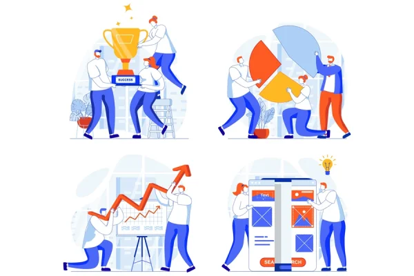 Download: Teamwork concept set. Team works together, develops business, receives awards. People isolated scenes in flat design. Vector illustration for blogging, website, mobile app, promotional materials.