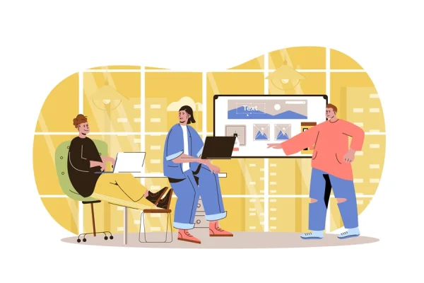 Download: Web development character concept. Developers team creates webpage layout, place graphic elements, discusses ideas at office isolated scene with persons. Vector illustration with people in flat design