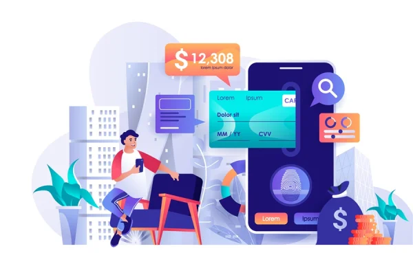 Mobile banking concept in flat design illustration