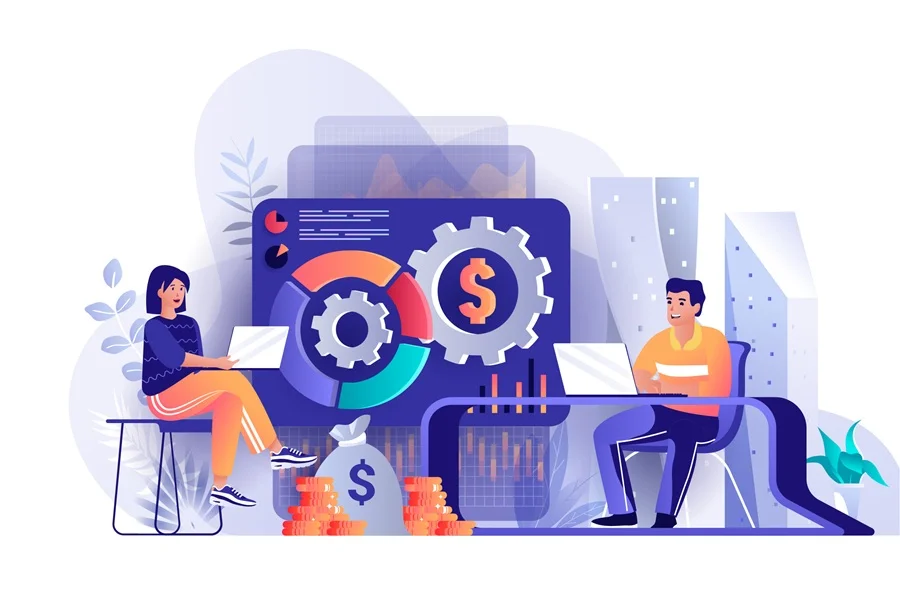 Download: Financial management concept in flat design. Financial strategy to attract investment scene template. Team working in office, developing business. Vector illustration of people characters activities