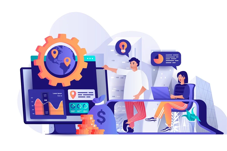 Download: Global business strategy concept in flat design. Development of successful business scene template. Company employees analyzes statistics, planning. Vector illustration of people characters activities
