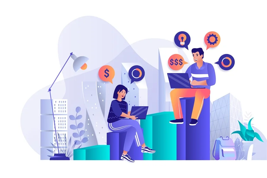 Download: Career opportunities concept in flat design. Search of available high-wage jobs scene template. Man and woman work, successful business, freelance. Vector illustration of people characters activities