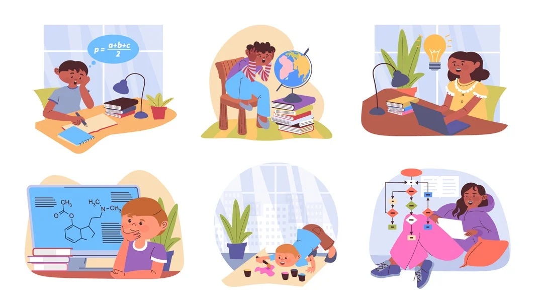 Self-study at home illustrations
