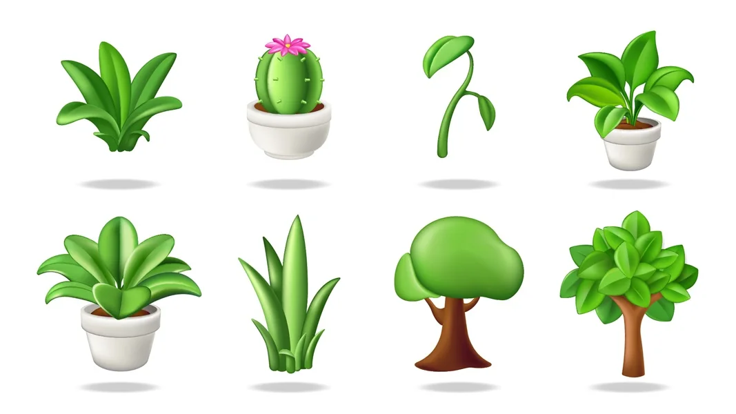 Download: Plant shoot concept of 3D illustration set for modern web design. Collection with glossy green leaves, cactus with pink flower, sprouts, houseplants in pot, trees with foliage. Vector illustration.