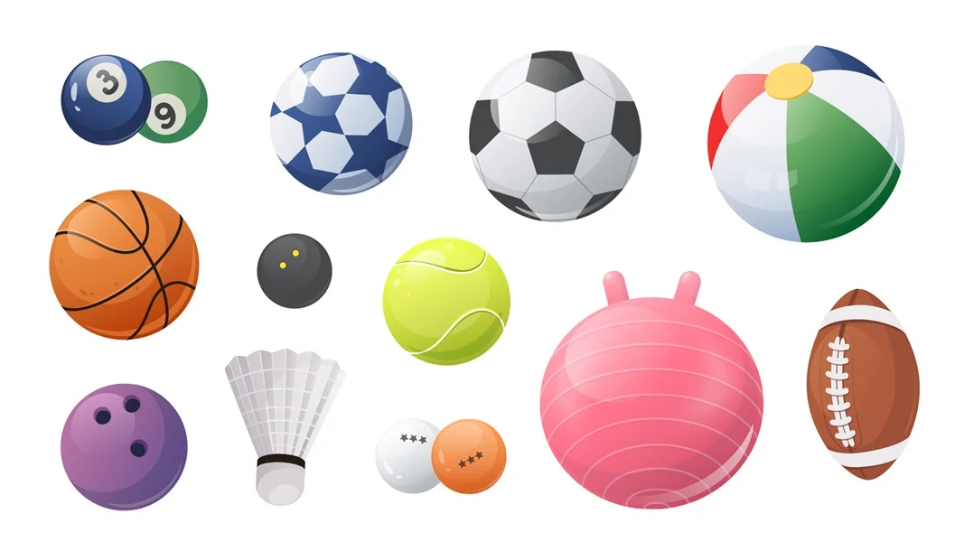 Download: Sport balls elements set design. Collection with bowling, soccer, football, basketball, beach, tennis, fitness, baseball, volleyball and other games leisure circle equipments. Vector illustration.
