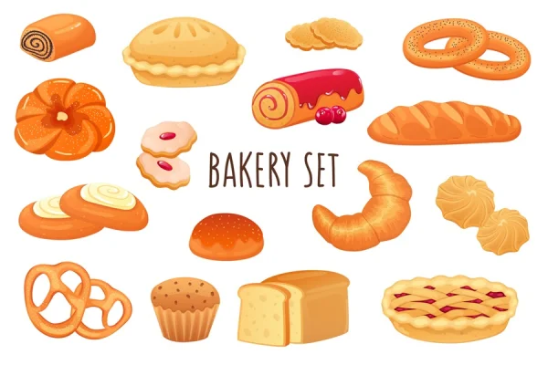 Download: Bakery icon set in realistic 3d design. Bundle of sweet rolls, pie, cookies, muffins, croissant, fresh bread, bun and other. Baking menu collection. Vector illustration isolated on white background.