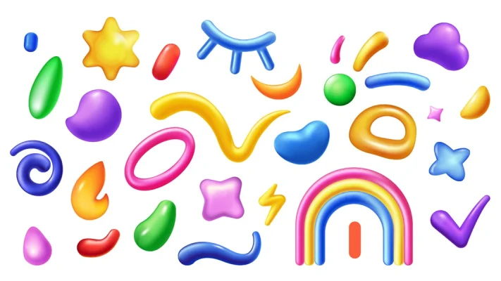 Colorful children shapes 3d elements set