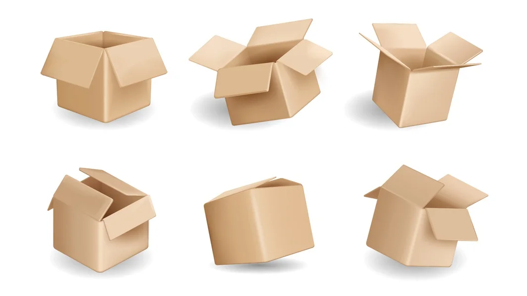 Download: Brown packing box 3d elements set in realistic render design. Collection of open and closed cardboard parcels, empty delivery paper packages, storage container in different view. Vector illustration.