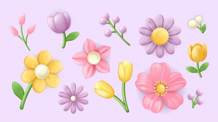 Flowers 3d elements set