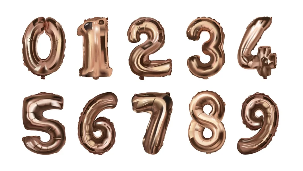 Download: Balloon number 3d elements set in realistic render design. Collection of glossy gold inflatable numeral shapes font, shiny foil helium symbols for luxury greeting decoration. Vector illustration.