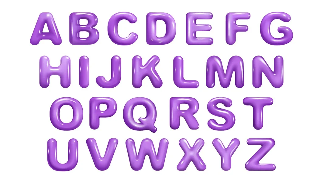 Download: Alphabet 3d elements set in realistic render design. Collection of glossy latin funny letters, english inflated bold lettering, shiny playful typography with plastic texture. Vector illustration.