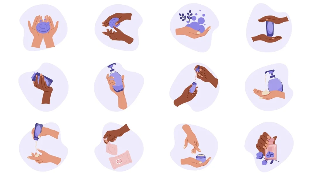 Hands holding various hygiene