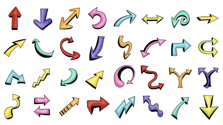 Download: Arrow doodles graphic elements set. Collection of black thin hand drawn scribbles with curved, swirl, rotation, curl and other shapes marks, different directions scratch pointers. Vector illustration.