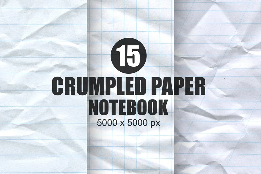 Download: This pack comes with a 15 notebook crymped paper texture background, rough and textured in school paper in PNG format.