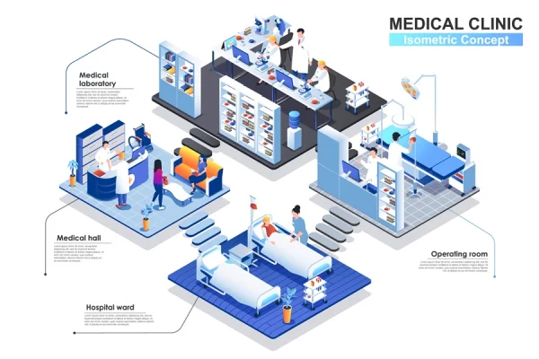 Hospital 3d isometric rooms concept