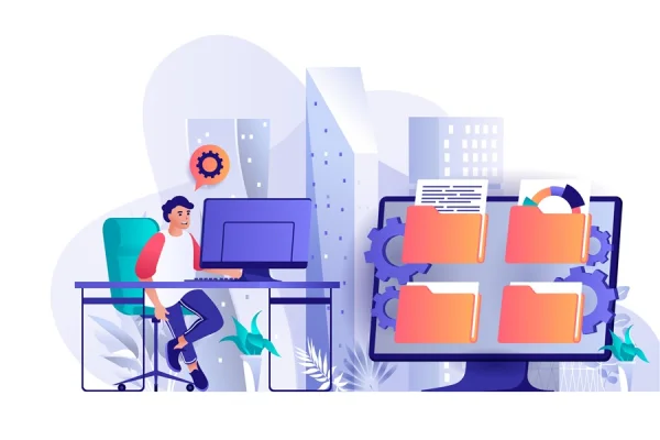 Electronic organization files concept in 3d isometric design