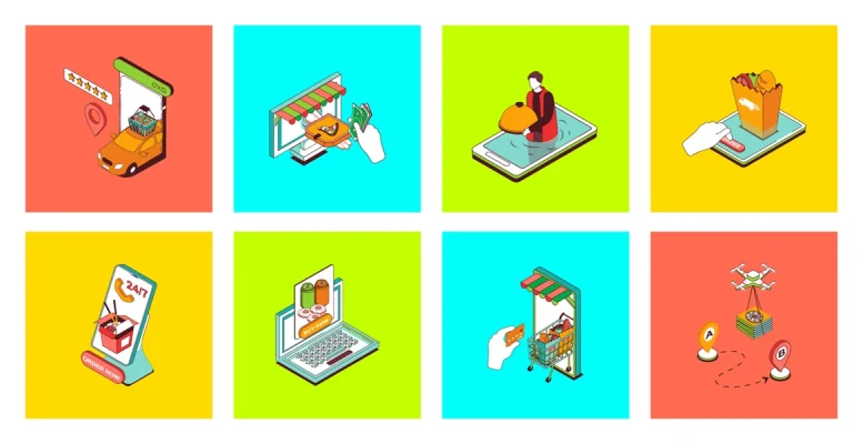 Food delivery isometric icons