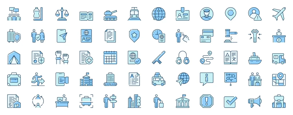 Refugees immigration web icons pack